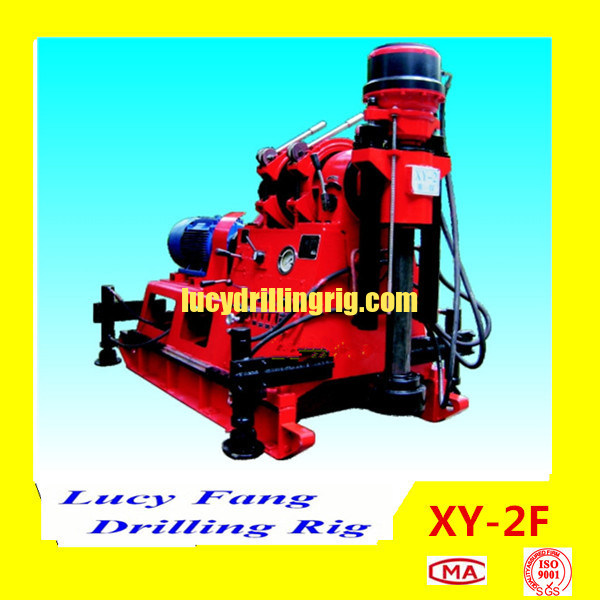 XY-2F core drill rig is derived from XY-2 drill rig, it can move conveniently because adding walking device base on XY-2 rig. It is small and light-weighted, mainly used in shallow and medium hole diamond and tungsten carbide bit core drilling, can also be used in soil anchoring hole, anchoring bar and engineering geological, hydro-geological, water well and pile grouting hole drilling.